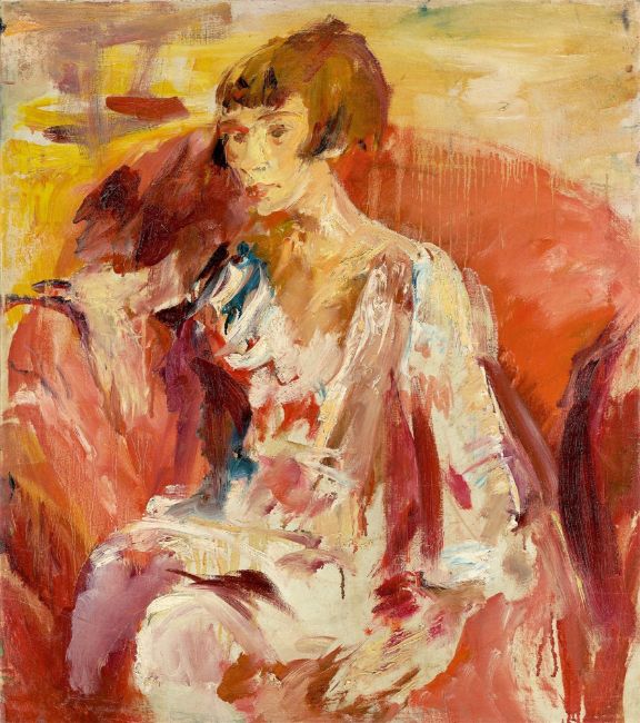 Wilhelm Kohlhoff (Berlin 1893 – 1971 Schweinfurt). „Dame, in rotem Sessel sitzend“. Um 1924