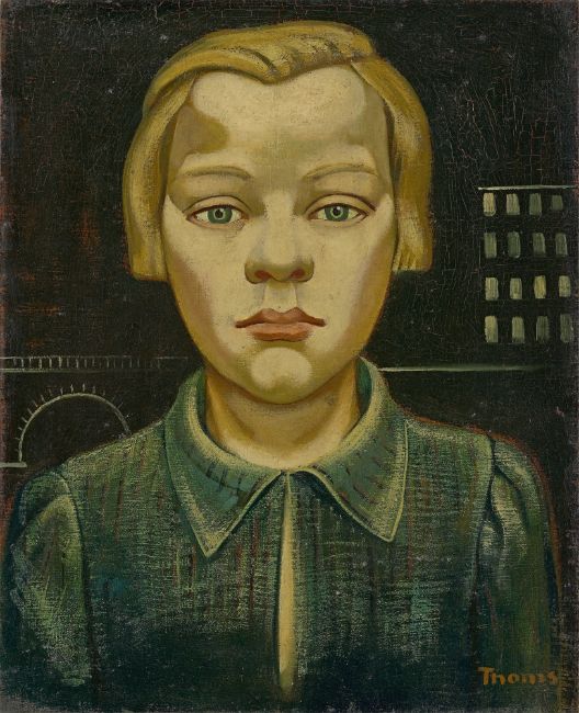 Oil on canvas. 50,5 × 40 cm ( 19 ⅞ × 15 ¾ in.). Signed lower right: Thoms. Signed, inscribed, titled and dated in black pen on the reverse: E. Thoms, Hanover Altstadtkind 1925.
