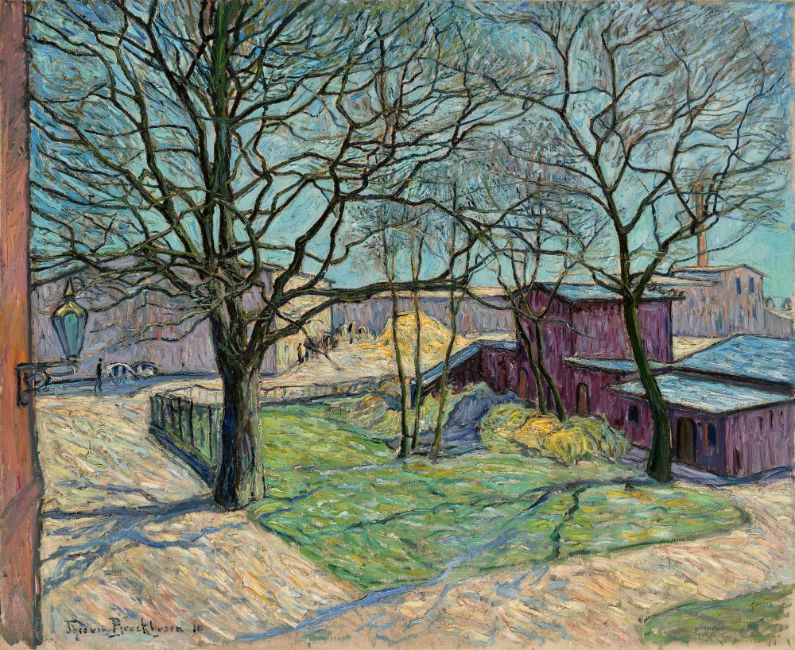Oil on canvas. 110 × 135 cm ( 43 ¼ × 53 ⅛ in.). Signed and dated lower left: Theo von Brockhusen 10. On the stretcher labels of the Salon d'Automne, Paris, 1911 and of Galerie Ferdinand Möller. On the decorative frame labels of Kunstverein Hanover and the carrier Gustav Knauer, Berlin.