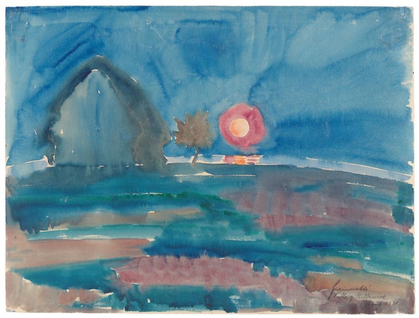 Watercolour on paper (from a sketch book). 36,7 × 49 cm ( 14 ½ × 19 ¼ in.). Signed, inscribed and dated in pencil lower right: Gramatté Vitte a/ Hiddensee Aug. 1921. Titled on the reverse with blue chalk: Mondaufgang auf Hiddensee.