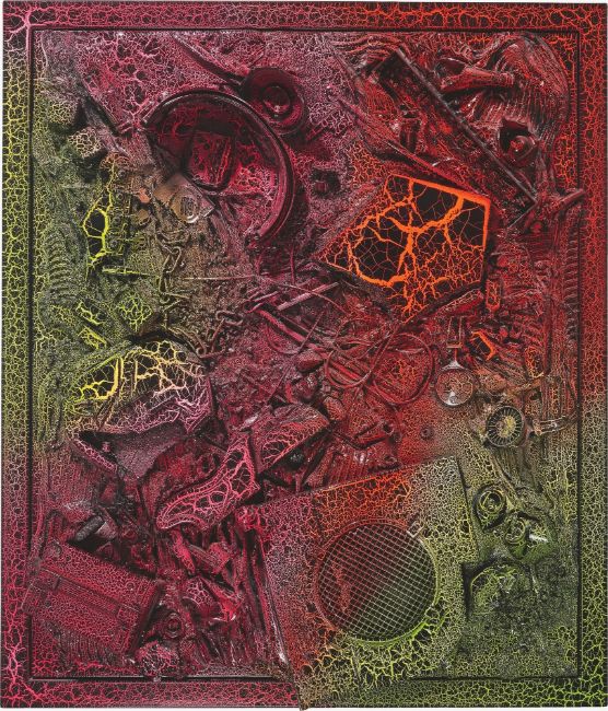 Mischtechnik auf Leinwand, Stahlrahmen, Reißlack. 148 × 127 × 20 cm (58 ¼ × 50 × 7 ⅞ in.). Auf dem beliegenden Zertifikat signiert.