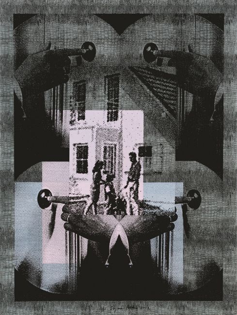Serigrafie auf bedrucktem Stoff, auf Keilrahmen. 120 × 90 cm (47 ¼ × 35 ⅜ in.). Signiert und datiert.