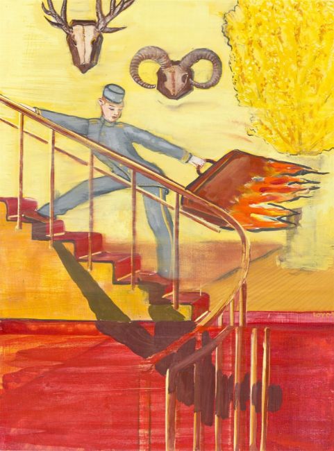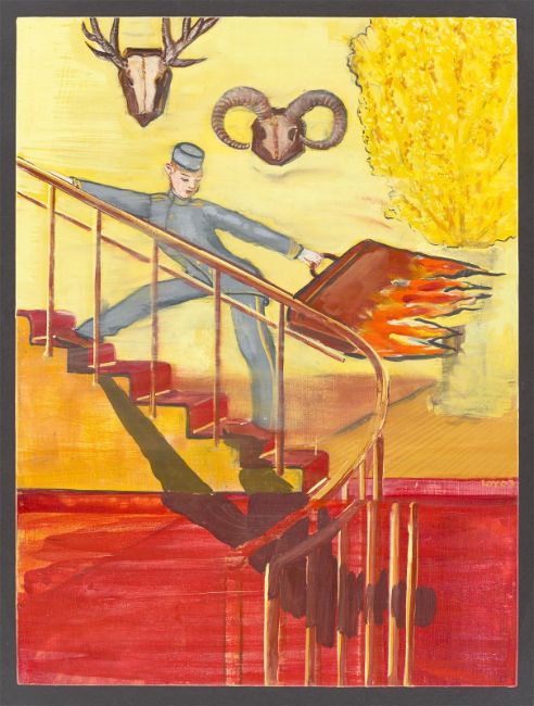 Öl auf Holz. 40 × 30 cm (15 ¾ × 11 ¾ in.). Rechts signiert und datiert: LOY 03. Rückseitig bezeichnet und betitelt: WVZ 303 HEISSE WARE.