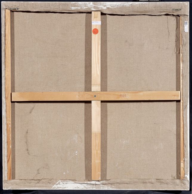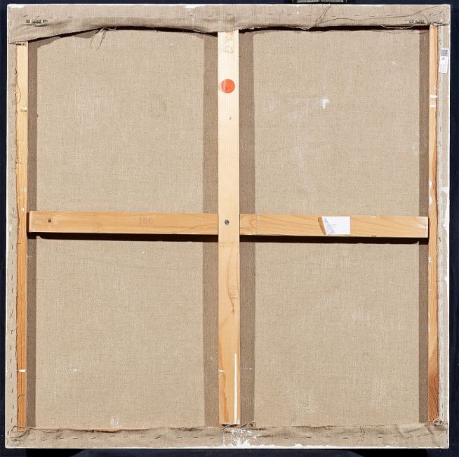 Zustandsbericht: In gutem Zustand. Die Leinwand ist nicht doubliert und befindet sich auf dem originalen Keilrahmen (originale Aufspannung). Die Leinwände stellenweise mit leichten Bereibungsspuren, insbesondere entlang der Ränder. Ebendort mit leichten Fingerspuren. "dienstag" am unteren Rand mit hellen, transparenten Fleckchen. Schöner harmonischer Gesamteindruck.