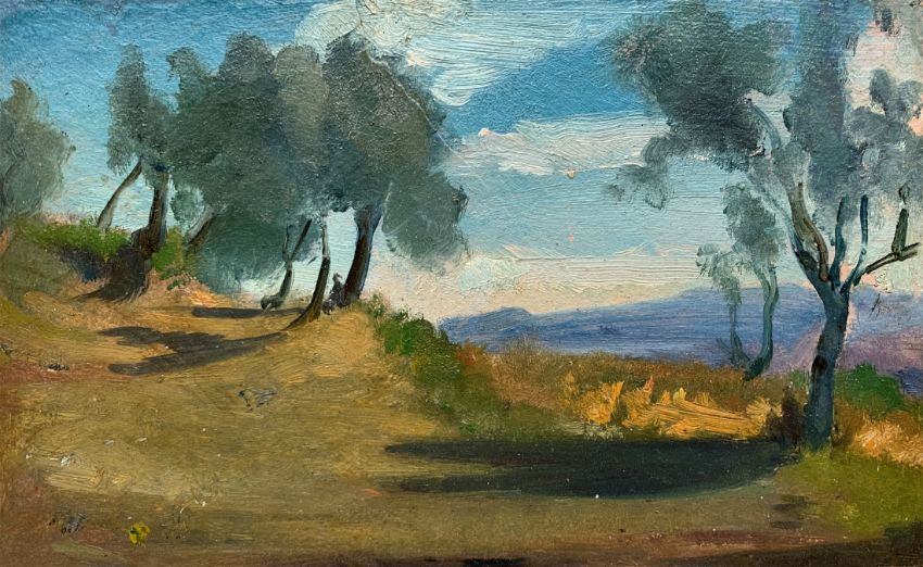 Johann Heinrich Schilbach (Barchfeld 1798 – 1851 Darmstadt). Zwei Ölstudien: „Ariccia“ / Italienische Landschaftsstudie.