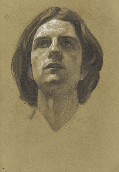 Kreide und Bleistift auf olivgrünem Papier. 32 × 22,4 cm (12 ⅝ × 8 ⅞ in.). Rückseitig: Nachlassstempel.