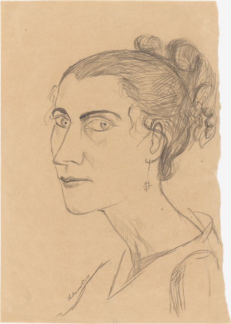 Bleistift auf glattem bräunlichen Papier (Wasserzeichen: 45 NORMAL 45). 33 × 23,8 cm (13 × 9 ⅜ in.). Unten links mit Bleistift signiert und datiert: Beckmann 27.6.20. Rückseitig von Reinhard Piper mit Bleistift beschriftet: für Frau Ullstein.