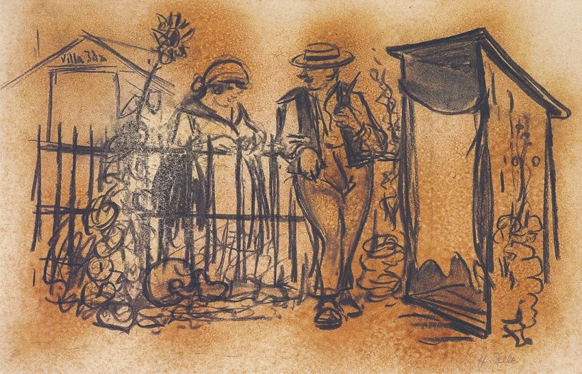 Kohle auf dünnem Papier, auf Papier aufgezogen. 37 × 50,3 cm (14 ⅝ × 19 ¾ in.). Unten rechts mit Bleistift signiert: H. Zille.