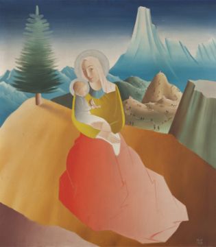 Öl auf Holz. 116 × 102 cm (45 ⅝ × 40 ⅛ in.). Unten rechts monogrammiert und datiert: MCP 1933. Rückseitig Etiketten der Carl Laszlo Collection und des Nemzeti Szalon Budapest (Nationaler Salon = eine Künstlervereinigung).