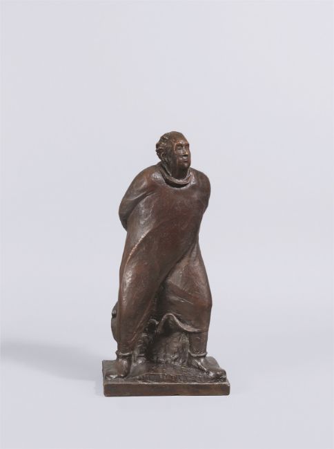Bronze mit brauner Patina. 51 × 24,5 × 17 cm (20 ⅛ × 9 ⅝ × 6 ¾ in.). Hinten auf dem Sockel signiert: E. Barlach. Hinten an der Schmalseite der Plinthe Gießerstempel: H.NOACK BERLIN FRIEDENAU.