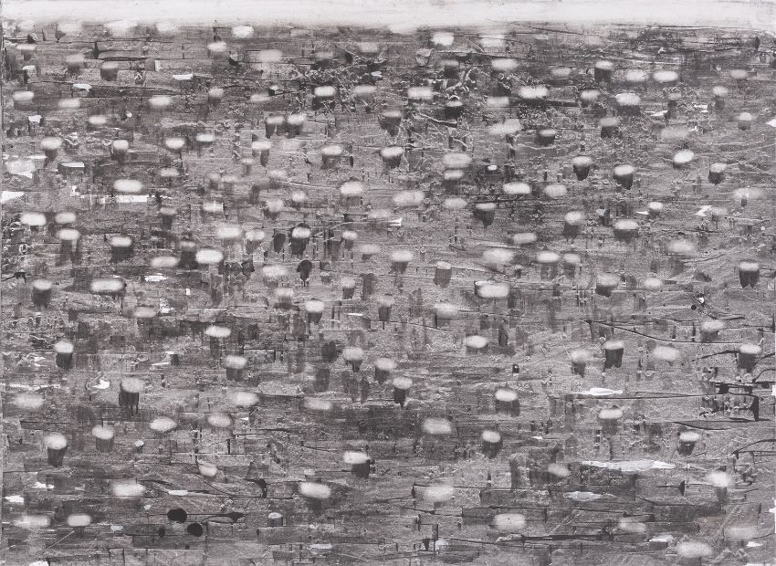 Öl auf Leinwand. 135 × 185 cm (53 ⅛ × 72 ⅞ in.). Rückseitig mit Pinsel in Schwarz signiert, datiert und betitelt: Th. Hartmann 1996 FLECKEN.