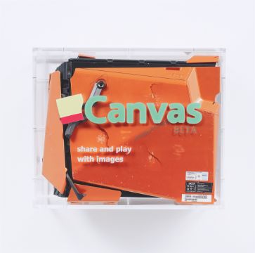 Simon Denny (Auckland/Neuseeland 1982 – lebt in Berlin). „Startup Casemod: Chris Poole’s Canvas“. 2015