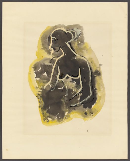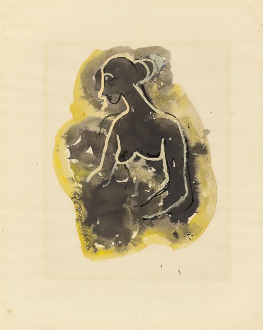 Aquarell und Pinsel in Schwarz bzw. Tuschfeder auf Papier. 50 × 40 cm (19 ⅝ × 15 ¾ in.). Unten rechts monogrammiert: CH. Auf der Rückseite unterhalb der Darstellung monogrammiert: CH.