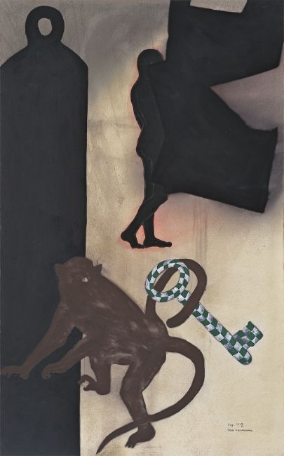 Vinyl und Acryl auf Nessel. 240 × 149,5 cm (94 ½ × 58 ⅞ in.). Unten rechts datiert und signiert: Aug. 1992 Max Neumann.
