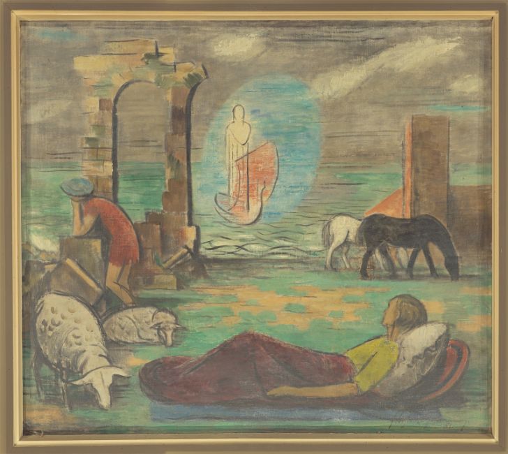 Öl auf Leinwand. 70 × 80 cm (Rahmenausschnitt) (27 ½ × 31 ½ in. (Rahmenausschnitt)). Unten rechts signiert und datiert: F. Ahlers-Hestermann 1921. Rückseitig unten rechts signiert und datiert: F. Ahlers-Hestermann 51.