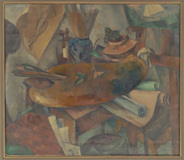 Friedrich Ahlers-Hestermann (Hamburg 1883 – 1973 Berlin). „Atelierstilleben (auch: Palettenstilleben)“ / „Tristan“ (beidseitig). 1921/1951
