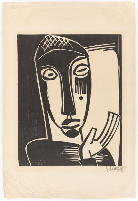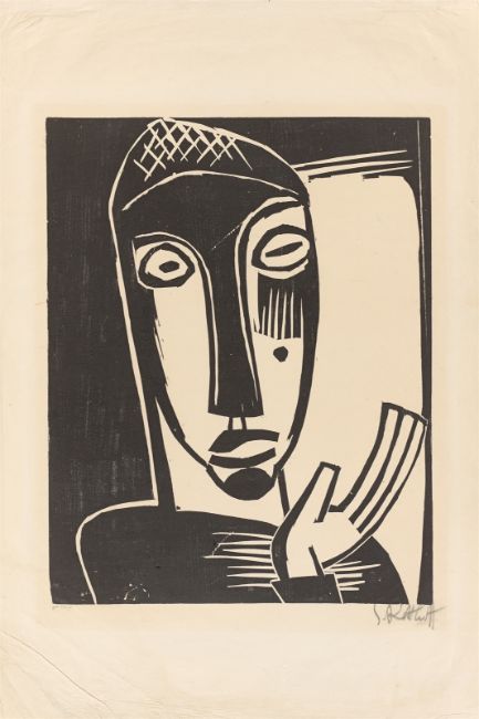 Holzschnitt auf Japanbütten. 50 × 39,5 cm (74,7 × 50,4 cm) (19 ⅝ × 15 ½ in. (29 ⅜ × 19 ⅞ in.)). Signiert. Unten links vom Drucker beschriftet: gedr. F.[ritz] Voigt.