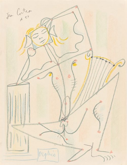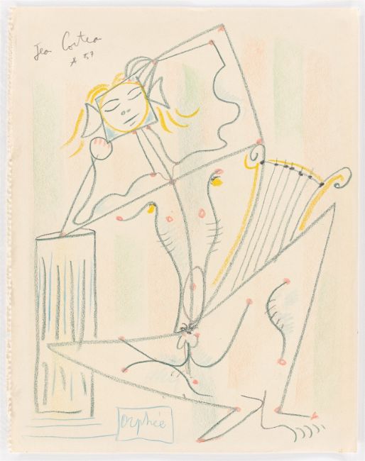 Farbkreide auf Papier. 41,8 × 33 cm (16 ½ × 13 in.). Oben links mit Bleistift signiert, bezeichnet und datiert: Jean Cocteau * 57.