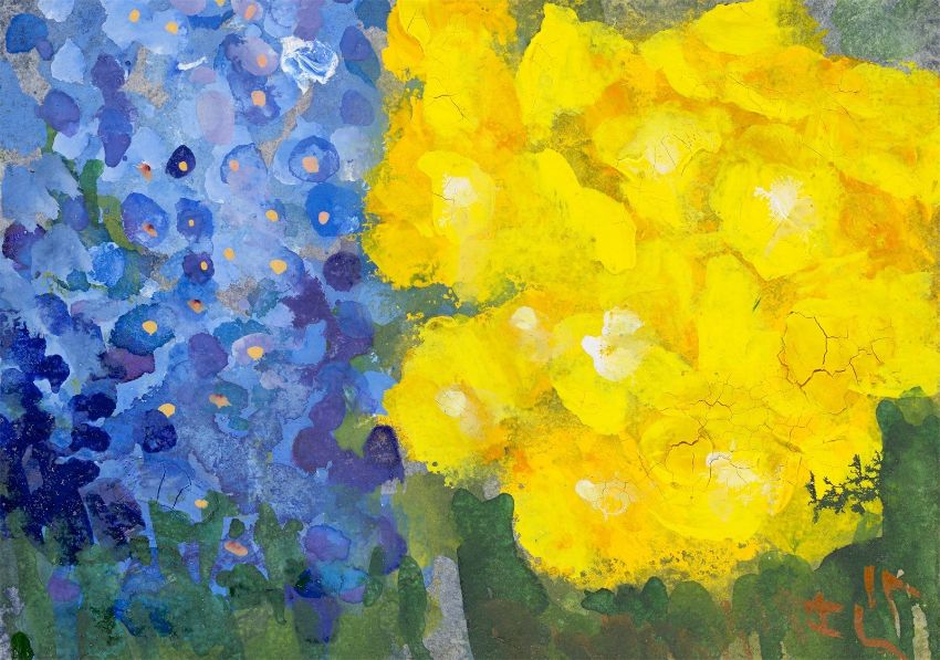 Zustandsbericht: Schöner harmonischer Gesamteindruck. Die Blattkanten ohne Einrisse oder Fehlstellen. Stellenweise, vor allem in pastosen Bereichen, Craquelé. Mit leichten Glanzunterschieden. Unter UV-Licht sind keine Retuschen oder Restaurierungen erkennbar. Rückseitig mit Atelierspuren und in den Ecken jeweils ein Rest ehemaliger Papiermontierung.