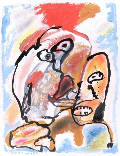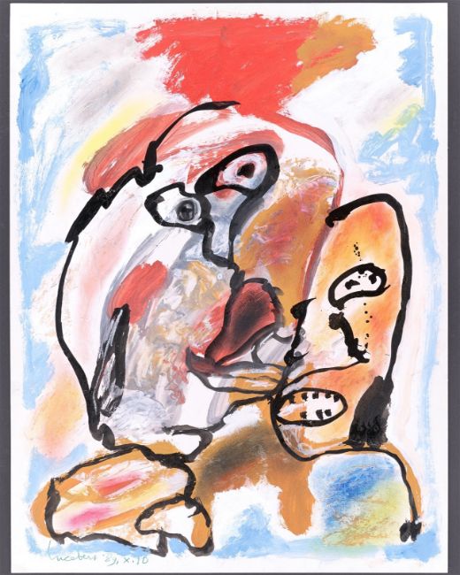 Acryl, Tusche und Kreide auf Karton. 85,1 × 49,9 cm (33 ½ × 19 ⅝ in.). Unten links signiert und datiert: Lucebert 89.X.10.