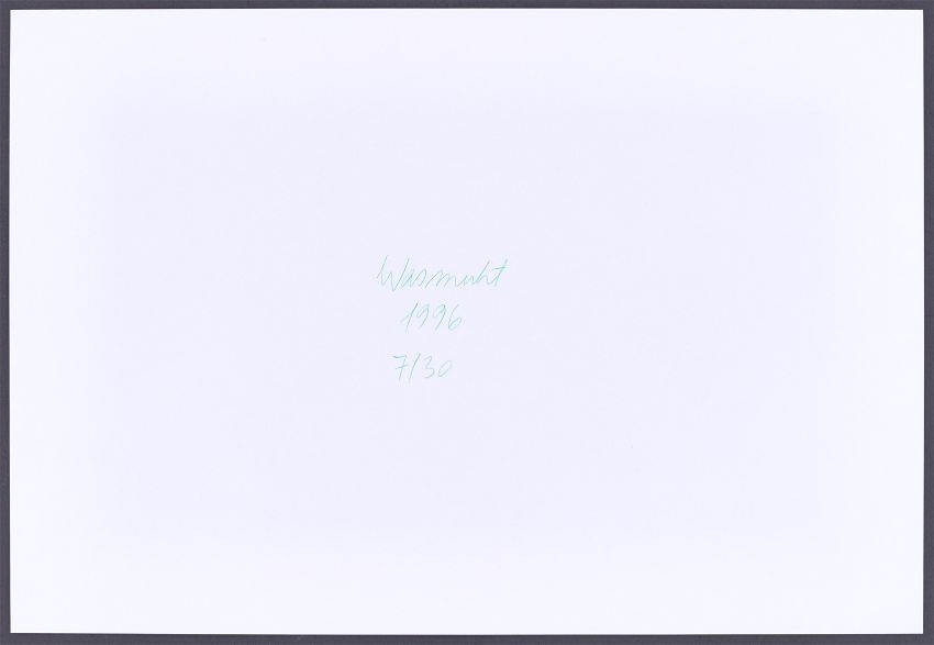 Original-Leinenmappe, typografisch bedruckt, mit 3 C-Prints und einem Impressum, typografisch bedruckt, jeweils auf Papier. Mappe: 35,5 × 50,5 × 1,2 cm (14 × 19 ⅞ × ½ in.). Jeweils signiert und datiert, eine Blatt betitelt.