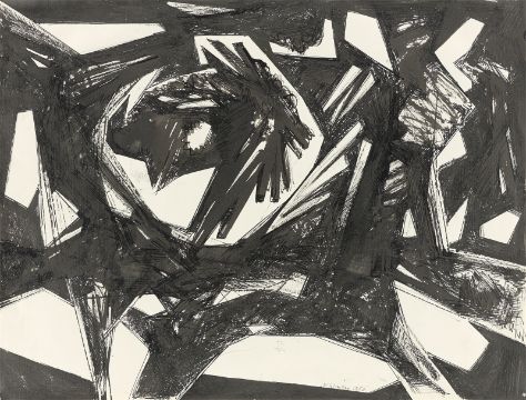 Tuschfeder und Tusche auf Velin. 43,9 × 58 cm (17 ¼ × 22 ⅞ in.). Unten rechts der Mitte signiert und datiert: Uhlmann 1956.