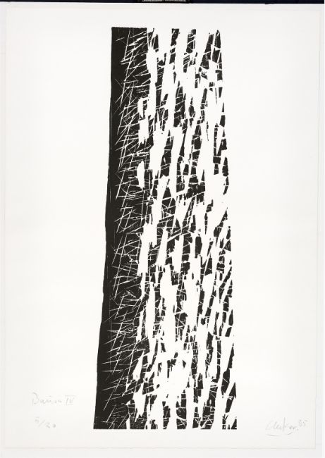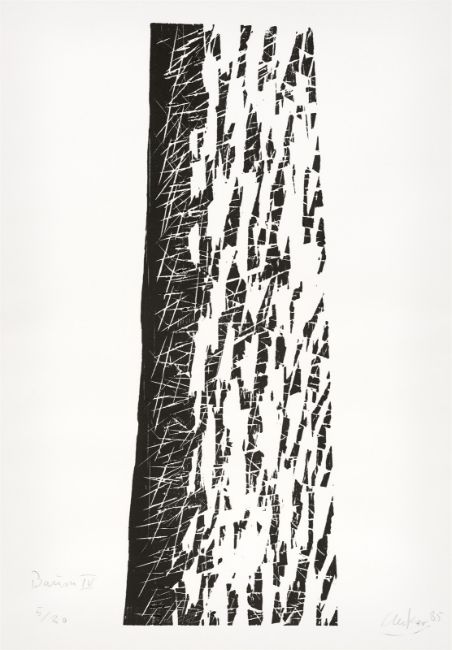 Holzschnitt auf Velin. 97,1 × 34,6 cm (106,3 × 75,5 cm) (38 ¼ × 13 ⅝ in. (41 ⅞ × 29 ¾ in.)). Betitelt, signiert und datiert.