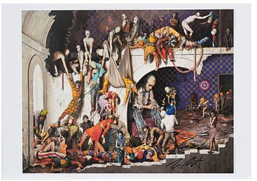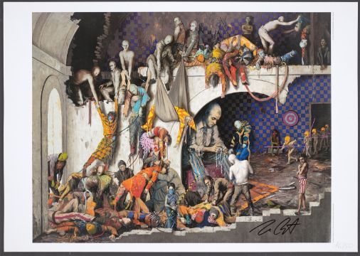 Zustandsbericht: "Schergen": Motiv. 38,7 × 50,1 cm. Ex. 16/50.