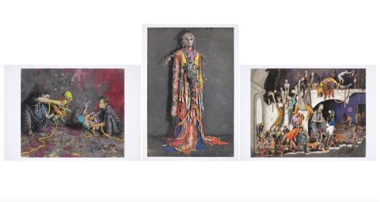 3 Farboffsets, jeweils auf Papier. Jeweils bis zu 38,7 × 50,1 cm (41,9 × 59,3 cm) (15 ¼ × 19 ¾ in. (16 ½ × 23 ⅜ in.)). Jeweils signiert.
