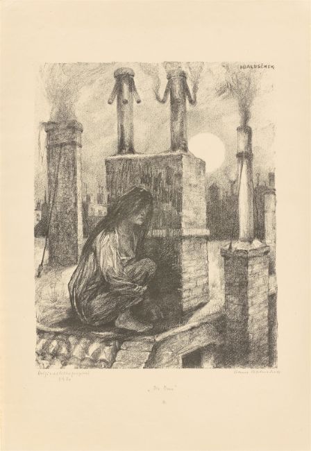 Jeweils einer von 50 nummerierten Abzügen. Blatt 2 und 4 (von 6) der Folge: Hans Baluschek. 6 Originallithographieen. Berlin, Carl P. Chryselius'scher Verlag, 1921. [3430]