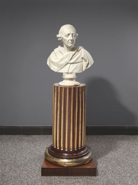 Mit einer klassizistischen Säule (Mahagoni furniert, die Kanneluren mit feuervergoldeter Bronze verkleidet, auf Holzsockel). Russland, um 1790. Höhe (ohne Sockel): 89 cm (35 in.). Der Marmor mit kleinen Substanzverlusten, zum Teil restauriert (im Sockel leicht verfärbt). [3084]