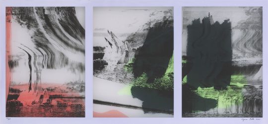 Farbserigrafie auf Reproduktionsfilmmaterial. 58 × 134 cm (68,3 × 142,8 cm) (22 ⅞ × 52 ¾ in. (26 ⅞ × 56 ¼ in.)). Signiert und datiert.