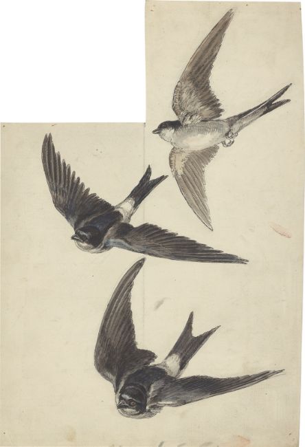 Otto Speckter (1807 – Hamburg – 1871). Drei Schwalben (+ 2 Beigaben).