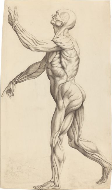 Philipp Otto Runge (Wolgast 1777 – 1810 Hamburg). „Knochenmann schräg von hinten“ / Verso: „Muskelmann in Schrittstellung nach links“.