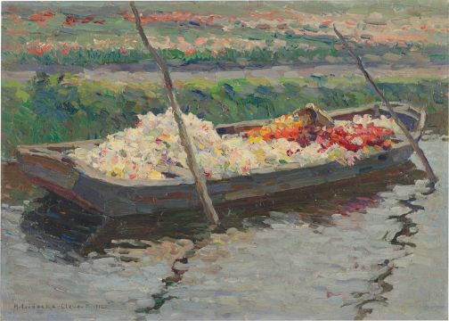 August Lüdecke-Cleve (Heinsberg 1868 – 1957 München). Kahn mit Blumen. 1912