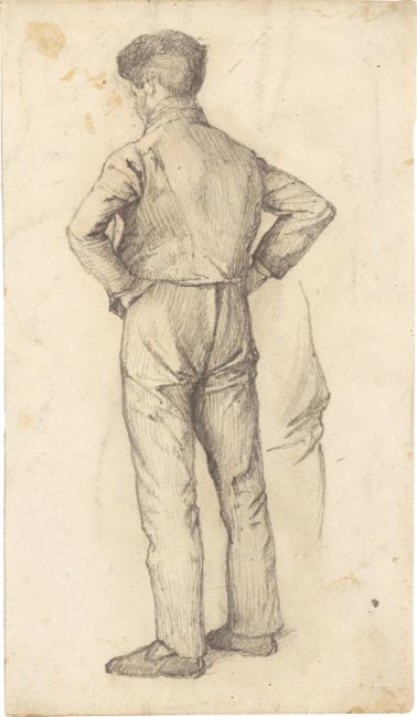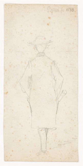 10) Bruno Piglhein (Hamburg 1848 – 1894 München): Rückenansicht eines gehenden Mannes. 1873. Bleistift auf Papier, 18,3 × 8,6 cm.