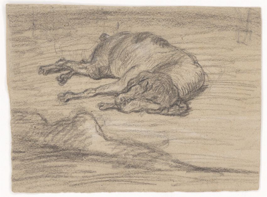9) Otto Speckter (?): Schlafender Hund. Bleistift auf braunem Papier, 10,3 × 13,7 cm.