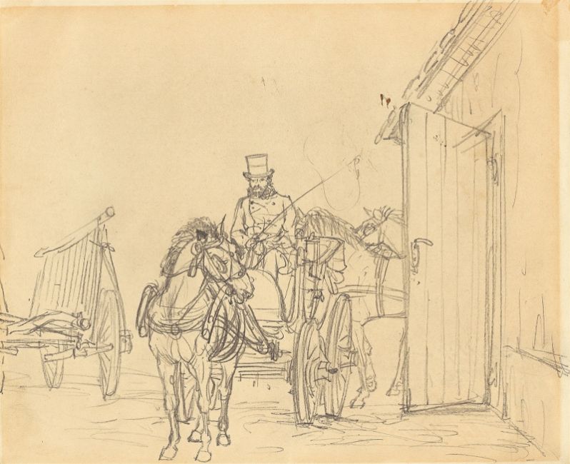 Adolph Menzel (Breslau 1815 – 1905 Berlin). Wartende Kutsche. 1840er Jahre
