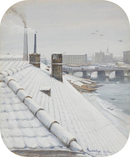 Frans van der Syp (tätig in Berlin um 1857/64). Schneebedeckte Dächer in Berlin. 1857