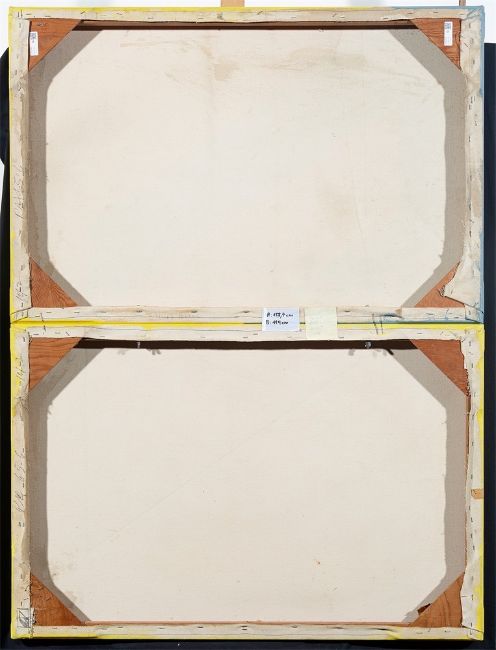 2-teilig: Acryl auf Leinwand. 153,7 × 114,7 cm (60 ½ × 45 ⅛ in.). Auf dem Keilrahmen mit Bleistift signiert, bezeichnet und datiert: R. Huot M 1965. Auf dem Überspann mit Filzstift in Schwarz beschriftet: RH 65-6 10/2.