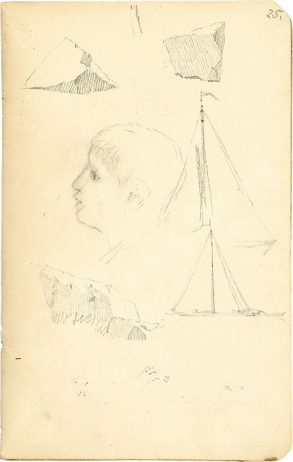 Skizzenbuch mit 20 Blatt Velin (Wasserzeichen: J Whatman 1801), davon 33 Seiten mit teilweise mit Sepia lavierten Bleistiftzeichnungen. Ca. 18,4 × 11,8 cm (7 ¼ × 4 ⅝ in.). Einzelne Seiten vom Künstler bezeichnet und datiert (zwischen dem 25. April 1804 und dem 1. Juni 1804).