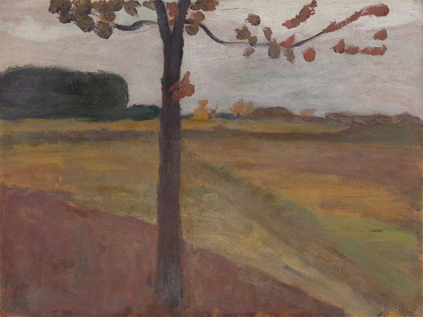 Paula Modersohn-Becker (Dresden 1876 – 1907 Worpswede). „Baumstamm vor Herbstlandschaft. Verso: Landschaftsstudie mit Moorkanal“. Um 1900