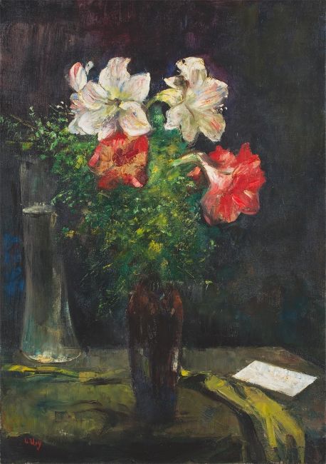 Lesser Ury (Birnbaum/Posen 1861 – 1931 Berlin). „Amaryllis“. Öl auf Leinwand. 100, × 70,5 cm (27 ¾ in.). Unten links signiert: L. Ury.Mit einem Gutachten von Dr. Sibylle Groß, Berlin. Das Pastell wird aufgenommen in das Werkverzeichnis der Gemälde, Pastelle, Gouachen und Aquarelle von Lesser Ury von Dr. Sibylle Groß, Berlin (in Vorbereitung).–[3065] Gerahmt. Provenienz: Privatsammlung (bis 1964) / Privatsammlung, Stuttgart (bis 1966) / Firnensammlung, Rheinland (bis 1994) / Anneliese und Dr. Wolfgang Schieren, München (erworben 1994 bei Grisebach, Berlin)Addendum/Erratum: Mit einem Gutachten von Dr. Sibylle Groß, Berlin, vom 6. November 2023Wir berechnen auf den Hammerpreis 32% Aufgeld.
