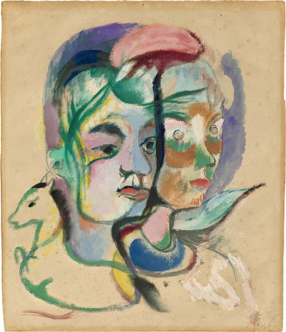 Heinrich Campendonk (Krefeld 1889 – 1957 Amsterdam). „Zwei Kinderköpfe“. Um 1915