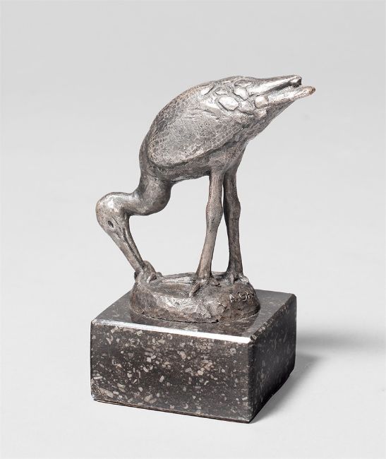 Silber, auf Marmorsockel montiert. 6 × 6 × 2,8 cm (2 ⅜ × 2 ⅜ × 1 ⅛ in.). Auf der Plinthe hinten signiert: A.GAUL. Auf der Plinthe vorne der Gießerstempel: H.NOACK BERLIN.