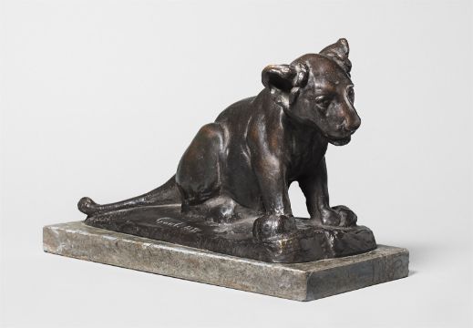 Bronze mit brauner Patina, auf Muschelkalksockel montiert. 14,5 × 23 × 10,5 cm (5 ¾ × 9 × 4 ⅛ in.). Auf der Plinthe vorne signiert und datiert: Gaul. 1898. Auf der Rückseite der Plinthe der Gießerstempel: H.NOACK BERLIN.