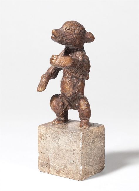 Bronze mit goldbrauner Patina, auf Steinsockel montiert. 13,5 × 6,8 × 7 cm (5 ⅜ × 2 ⅝ × 2 ¾ in.). Am rechten Fuß hinten monogrammiert: RS. Am linken Fuß hinten der Gießerstempel: NOACK BERLIN.