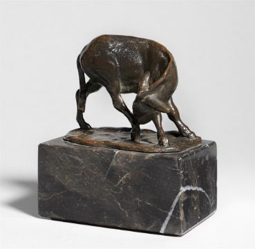 Bronze mit dunkelbrauner Patina, auf Marmorsockel montiert. 5,3 × 7 × 5 cm (2 ⅛ × 2 ¾ × 2 in.). Auf der Plinthe hinten signiert: A.GAUL.