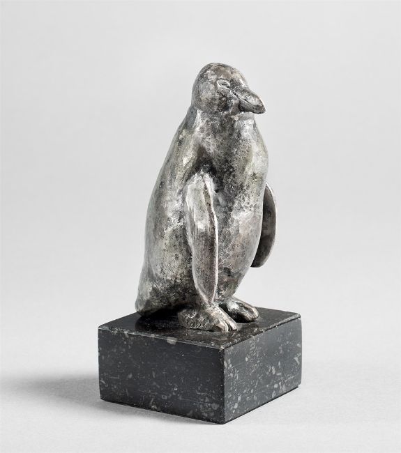 Silber, auf Marmorsockel montiert. 6,9 × 3,5 × 4,1 cm (2 ¾ × 1 ⅜ × 1 ⅝ in.). Am rechten Fuß signiert: GAUL. Am linken Fuß der Gießerstempel: NOACK und die Silberpunze: 925.