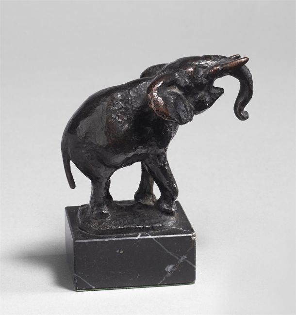 Bronze mit dunkelbrauner Patina, auf Marmorsockel montiert. 5,8 × 7 × 3,7 cm (2 ¼ × 2 ¾ × 1 ½ in.). Auf der Plinthe signiert: A.GAUL. Auf der hinteren Schmalseite der Plinthe der Gießerstempel: NOACK BERLIN.